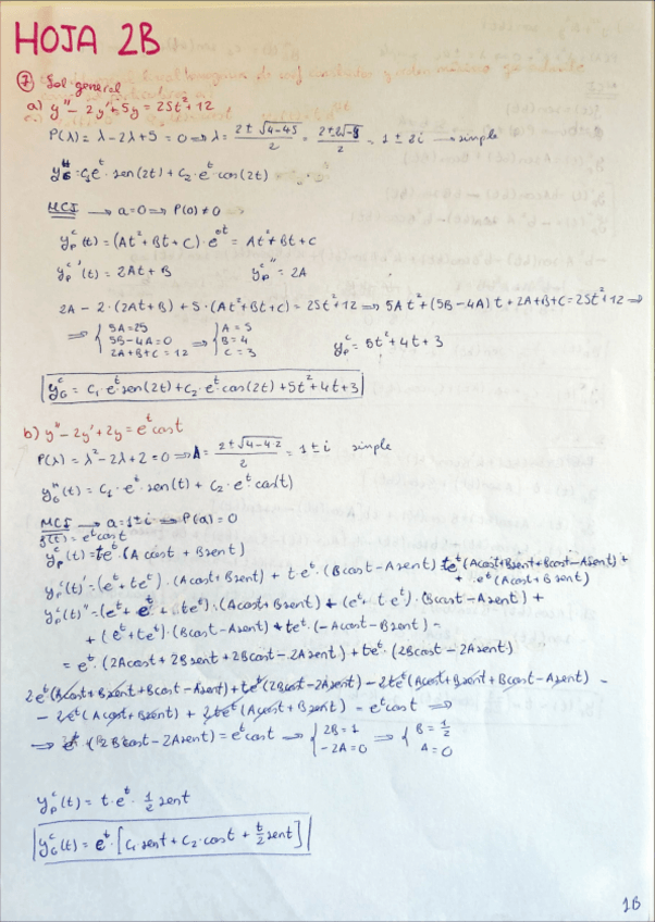 He publicado nuevos ejercicios de 2º Ecuaciones Diferenciales: HOJAS B RESUELTAS