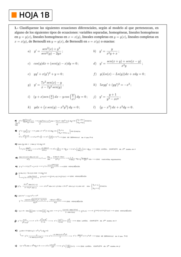 He publicado nuevos ejercicios de 2º Ecuaciones Diferenciales: Hojas B