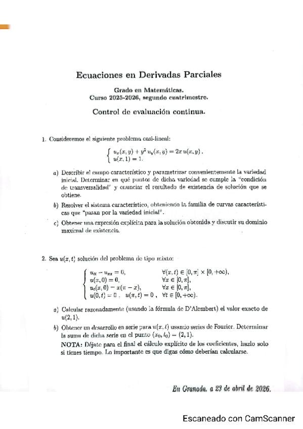 He publicado nuevos examenes de 4º Ecuaciones en Derivadas Parciales: EDPsParcial2026.pdf