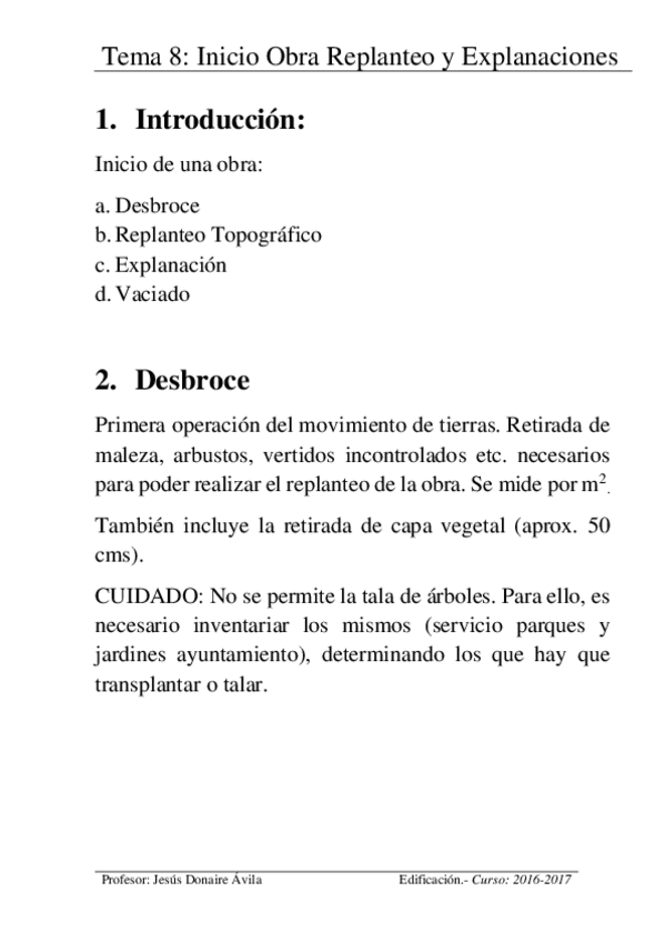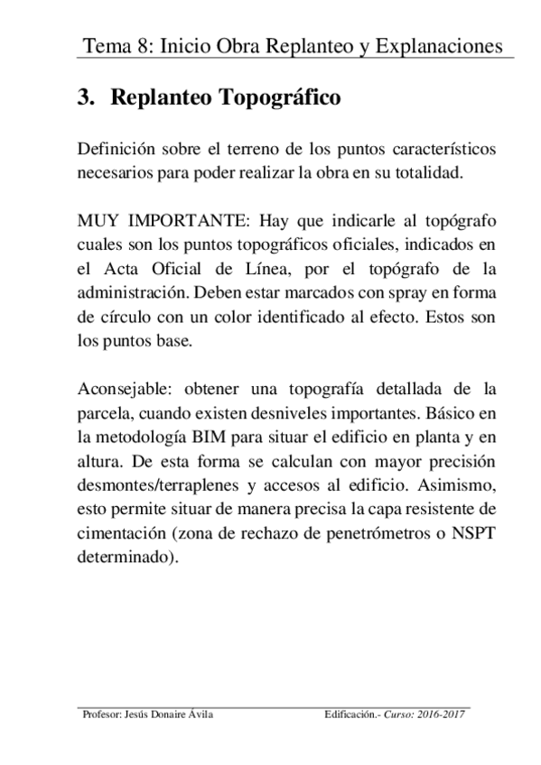 He publicado nuevos apuntes de 4º Edificación: Tema8InicioObraReplanteoyExplanaciones.pdf