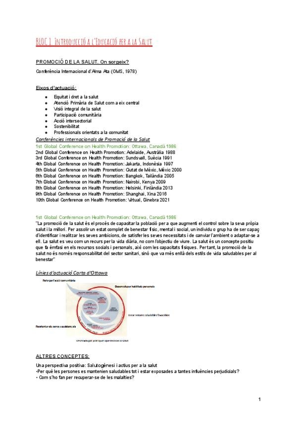 EDUCACIÓ PER LA SALUT APUNTS COMPLERTS + SEMINARI