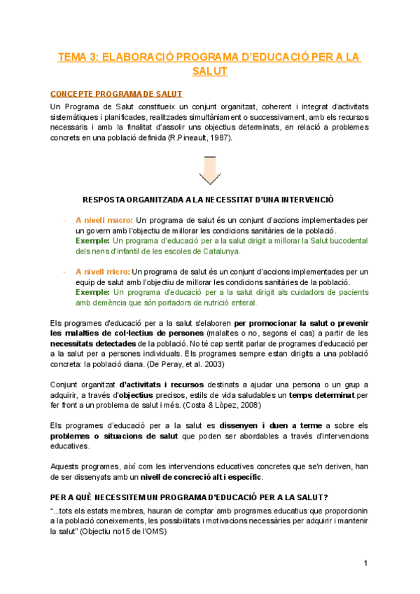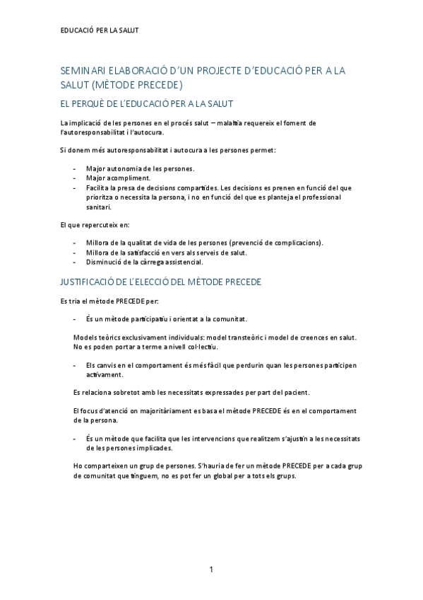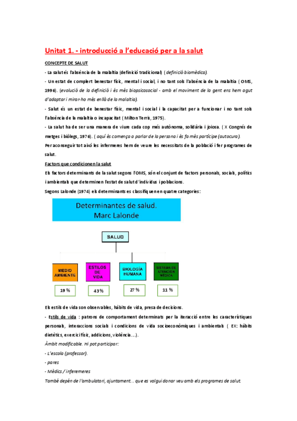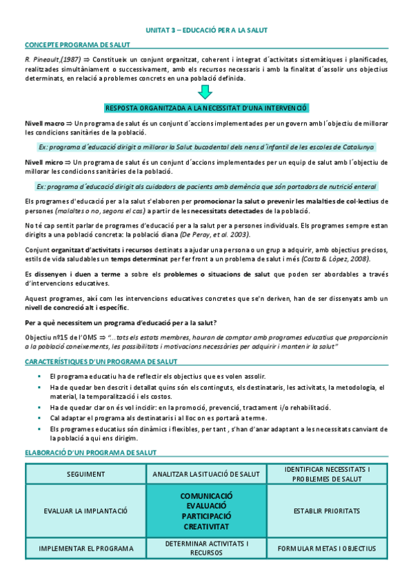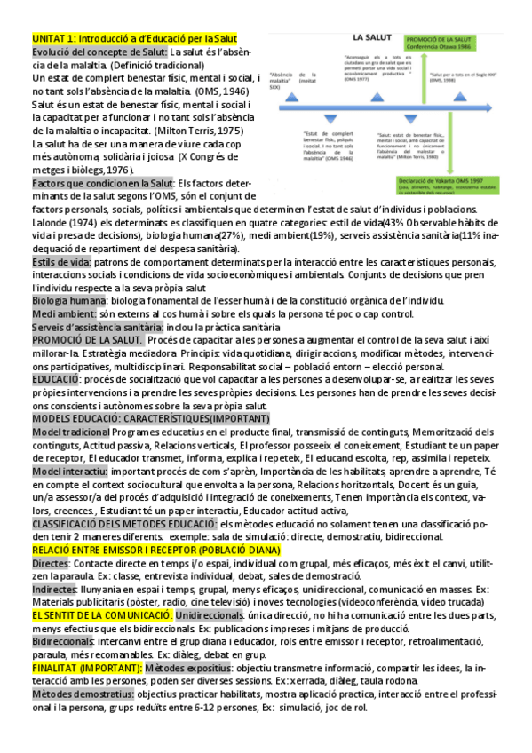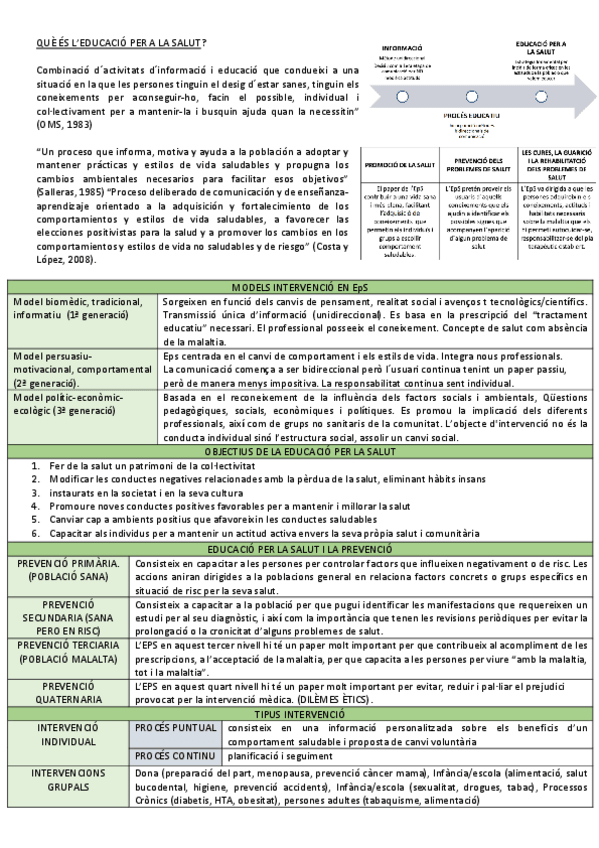 EDUCACIÓ PER LA SALUT APUNTS COMPLERTS + SEMINARI