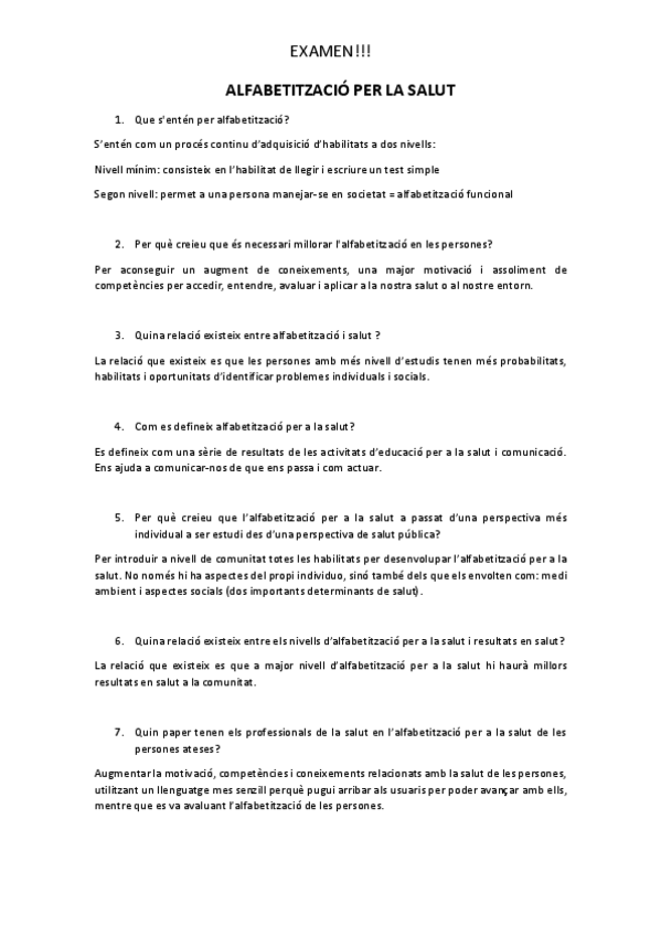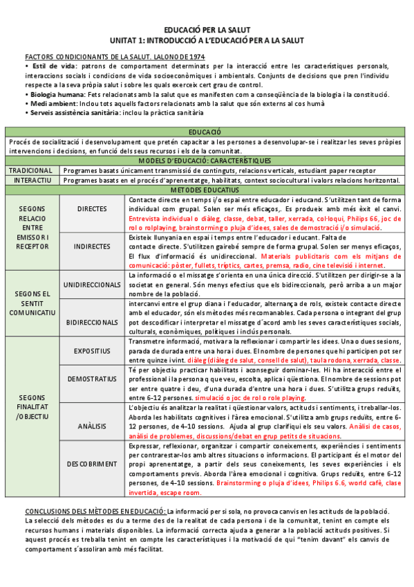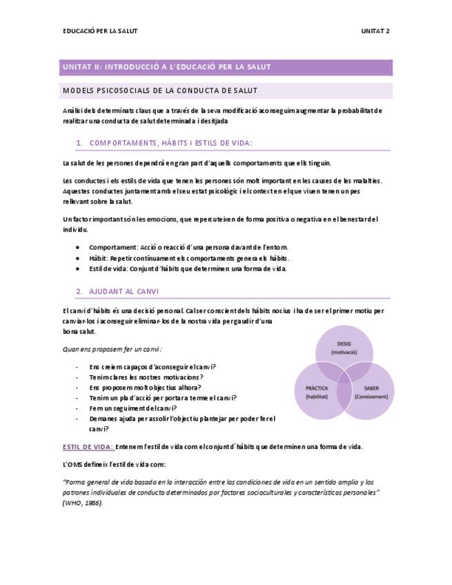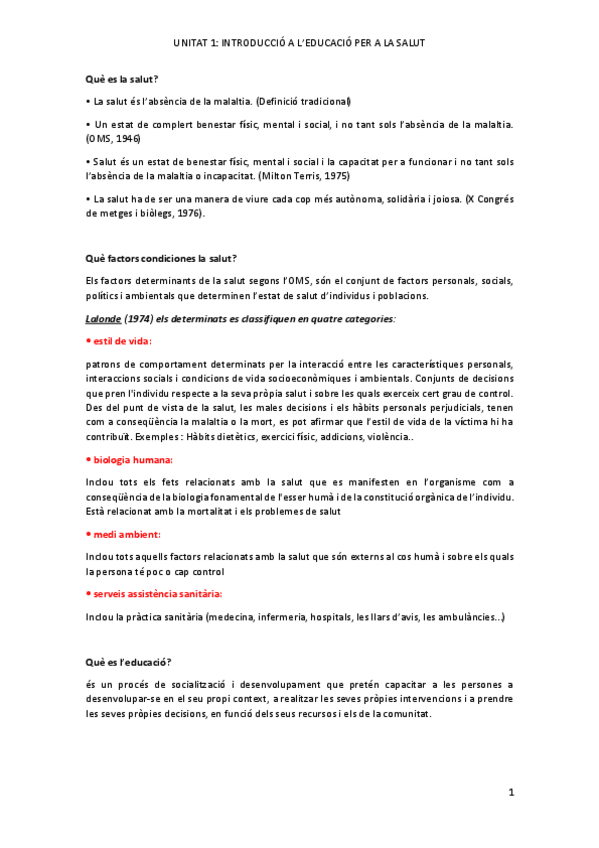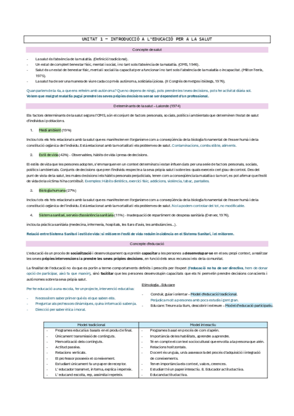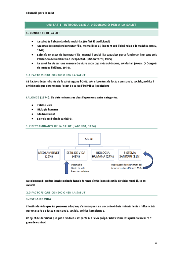 EDUCACIÓ PER LA SALUT APUNTS COMPLERTS + SEMINARI