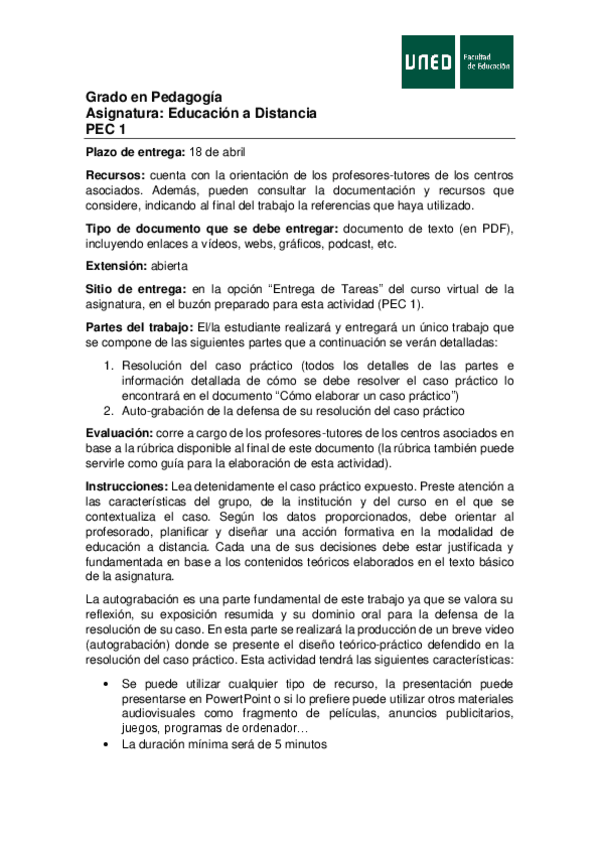 He publicado nuevos pec de 4º Educación a Distancia: pec1-educacion-a-distancia.pdf
