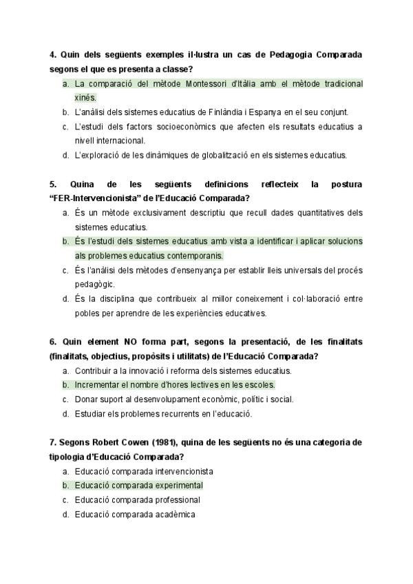 Aquí hay 40 preguntas con las respuestas de un examen tipo test de educación comparada que puede servir para repasar de cara al examen.