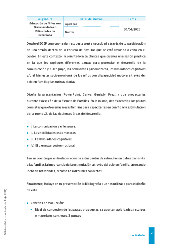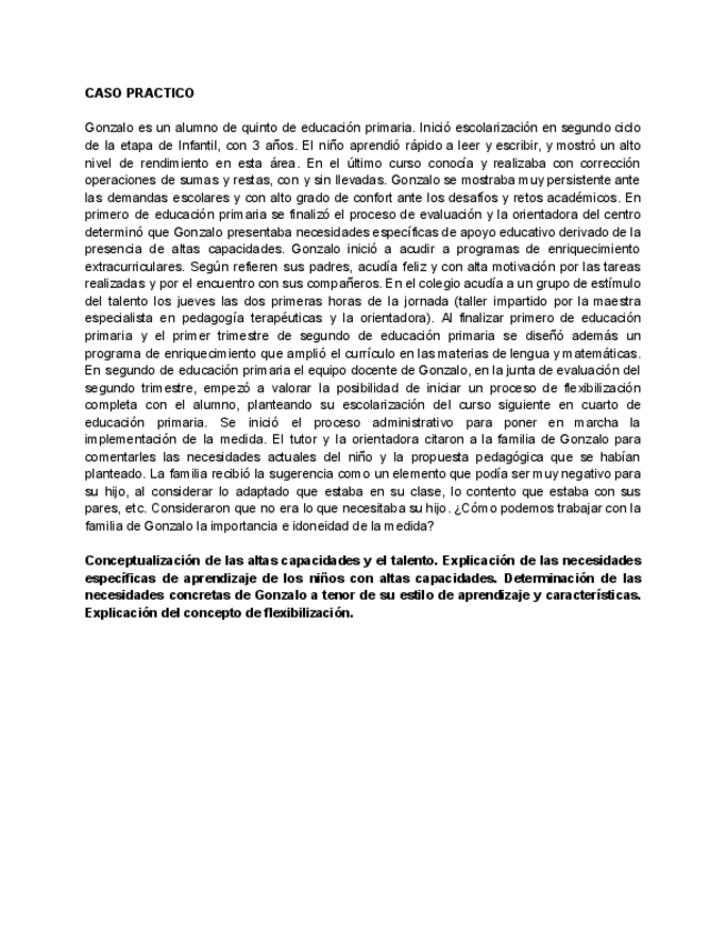 He publicado nuevos ejercicios de 4º Educación de Niños con Discapacidades o Dificultades de Desarrollo: CASO-GONZALO.pdf