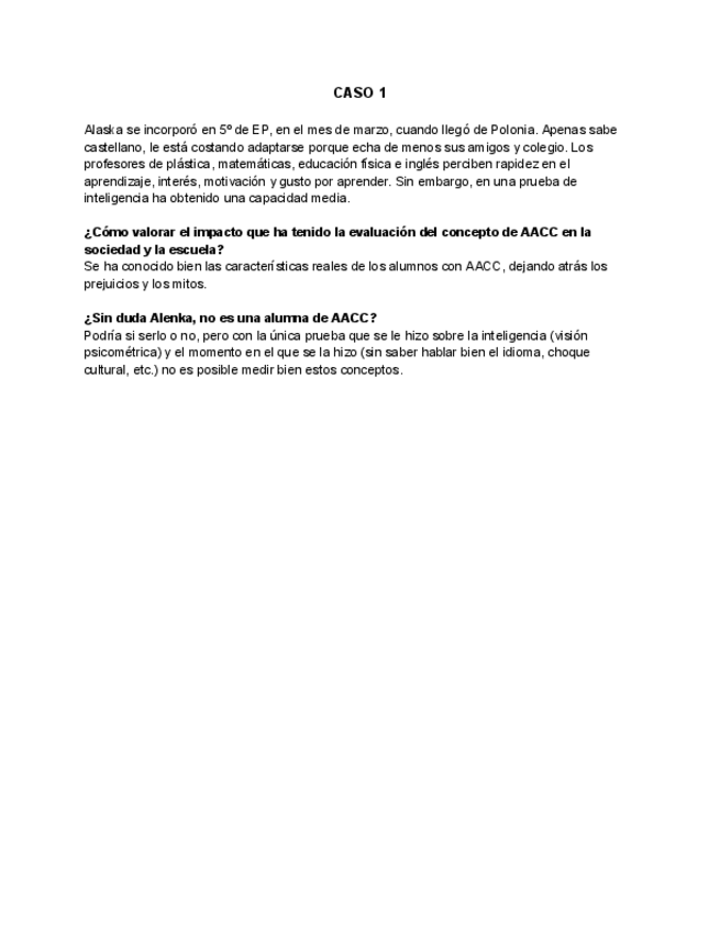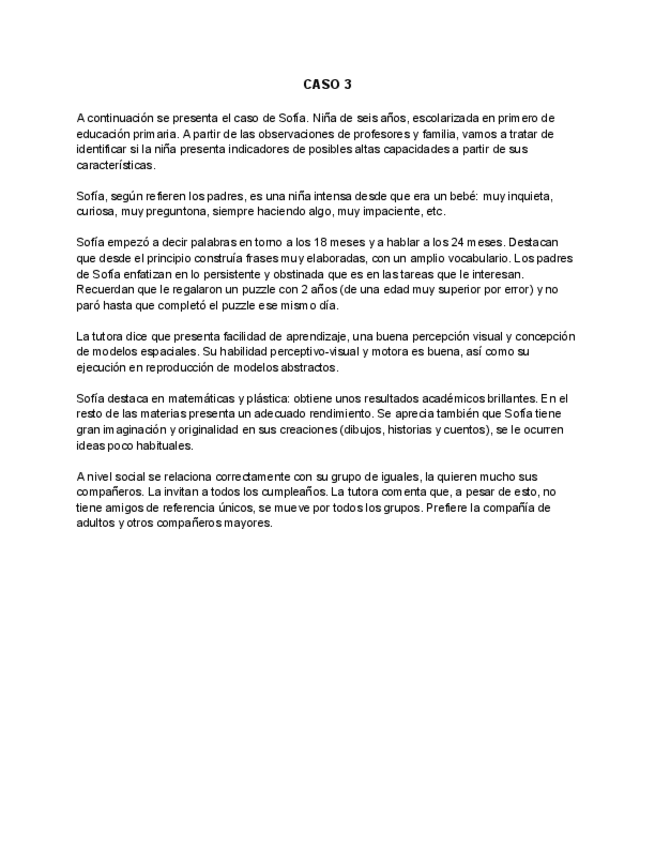 He publicado nuevos ejercicios de 4º Educación de Niños con Discapacidades o Dificultades de Desarrollo: CASO-CRISTINA.pdf
