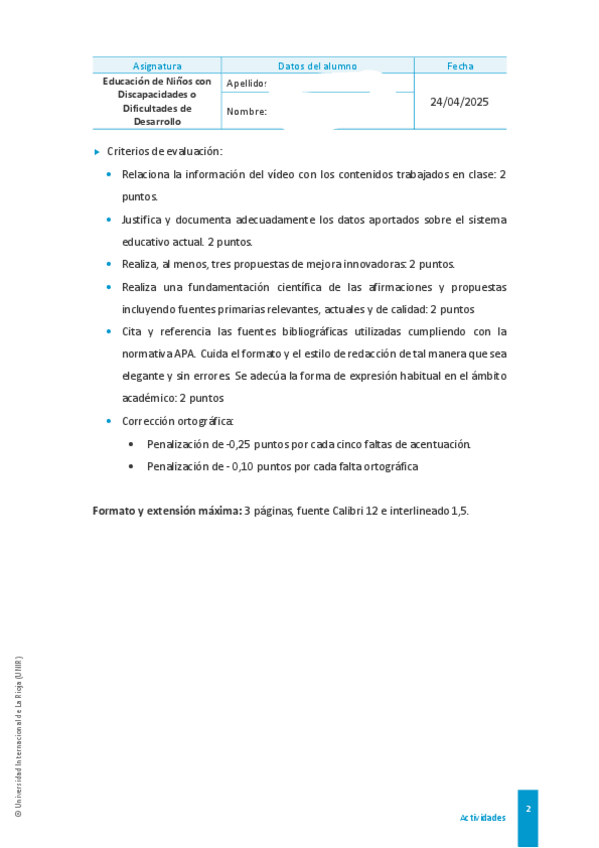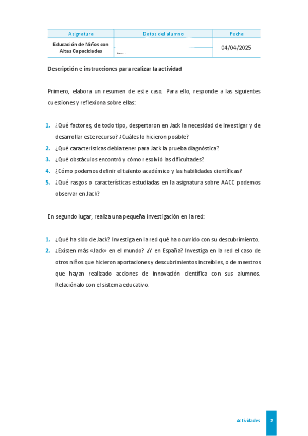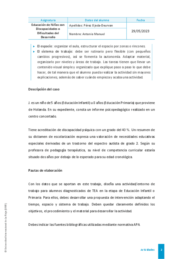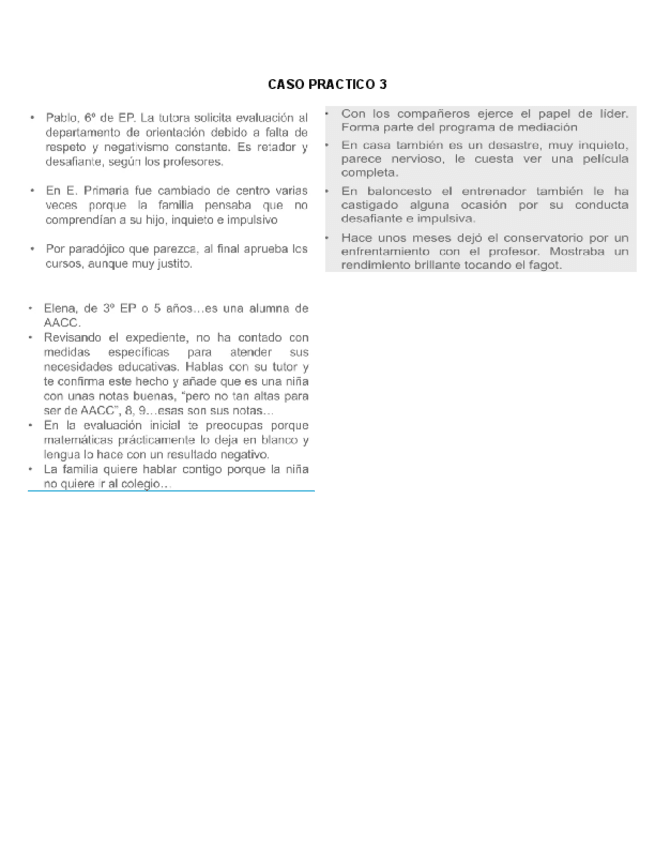 He publicado nuevos ejercicios de 4º Educación de Niños con Discapacidades o Dificultades de Desarrollo: CASO-JUAN.pdf