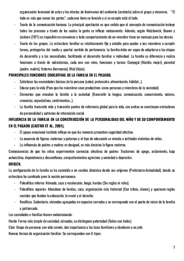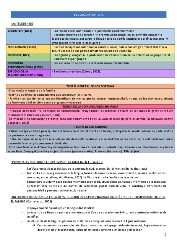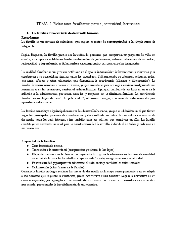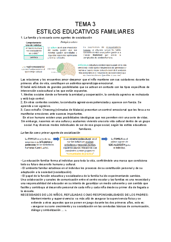 Apuntes tema 2 de educacion familiar. Se aconseja mirar el tema para completar