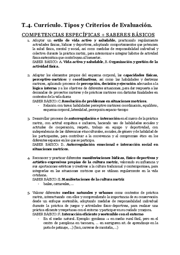 TEMA 4 - Currículo. Tipos y Criterios de Evaluación. TEMA 5 - Estilos de enseñanza y la Autodeterminación