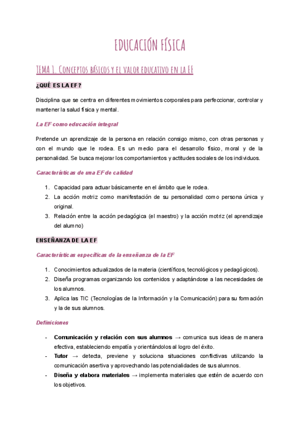 Resumen asignatura Educación Física y su Didáctica