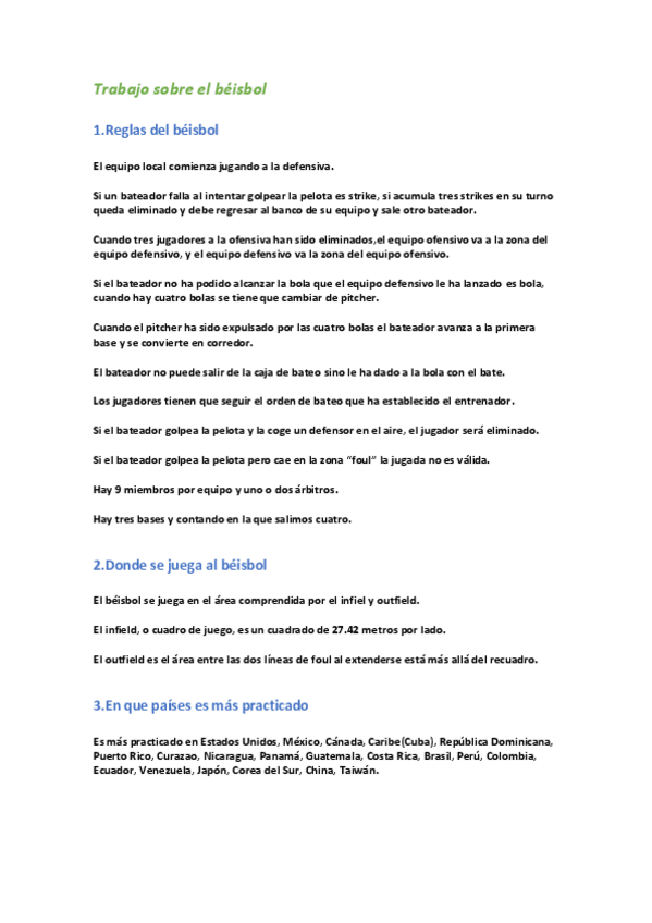 Trabajo sobre el béisbol