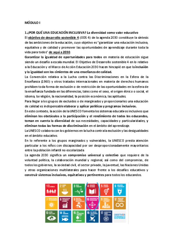 Todos los apuntes del primer módulo de Educación Inclusiva.