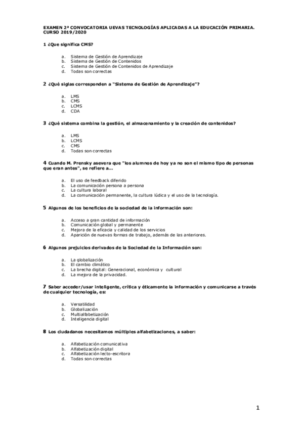 He publicado nuevos examenes de 1º Educación: Nuevas Tecnologías Aplicadas a la Educación Primaria: examenteoriaNNTT20192020.pdf