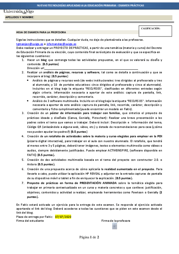He publicado nuevos examenes de 1º Educación: Nuevas Tecnologías Aplicadas a la Educación Primaria: examePRACTICASNNTTPRIMARIAXULLO2020.pdf