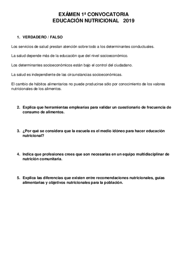 He publicado nuevos examenes de 2º Educación Nutricional: Examen 1ª CONVOCATORIA (2019) Resuelto.pdf