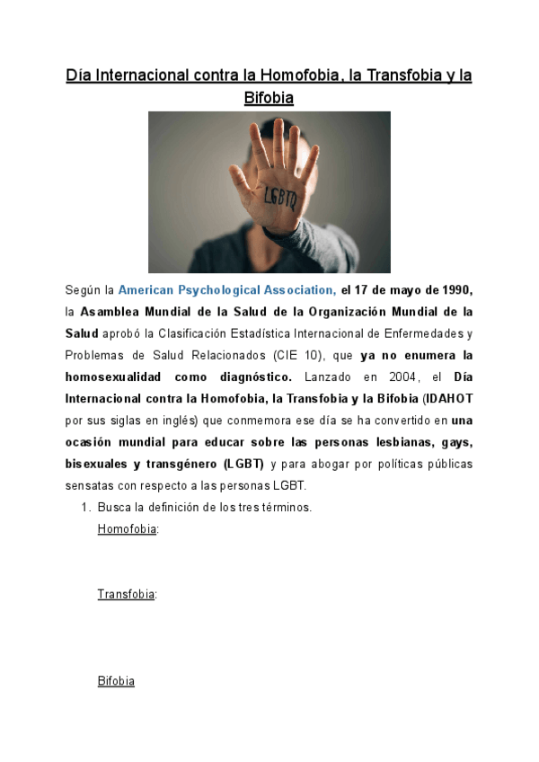 Día Internacional contra la Homofobia, la Transfobia y la Bifobia