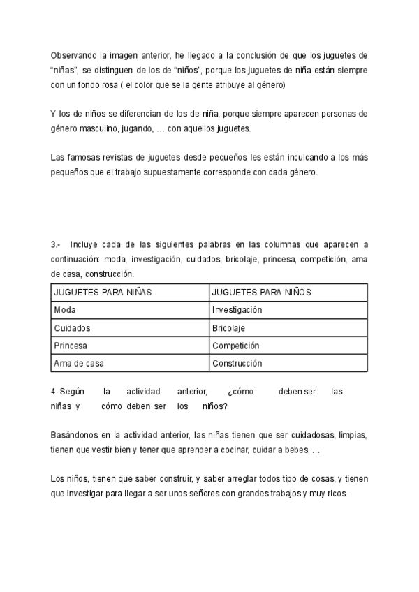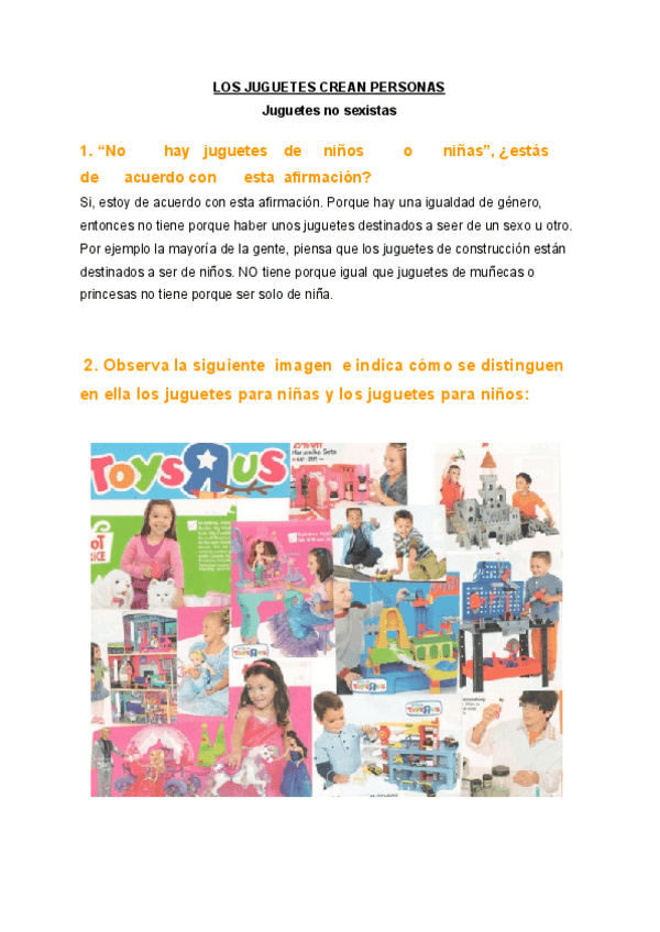 LOS JUGUETES CREAN PERSONAS - EJERCICIOS Y RESPUESTAS
