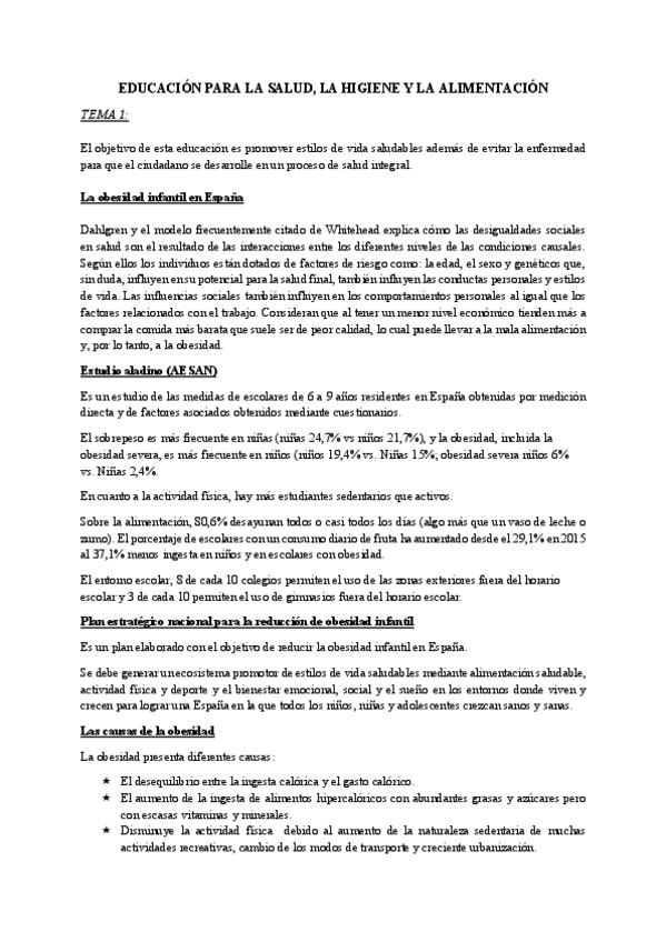 Apuntes del tema 1 al tema 10 del bloque 1 de Educación para la salud, la higiene y la alimentación.