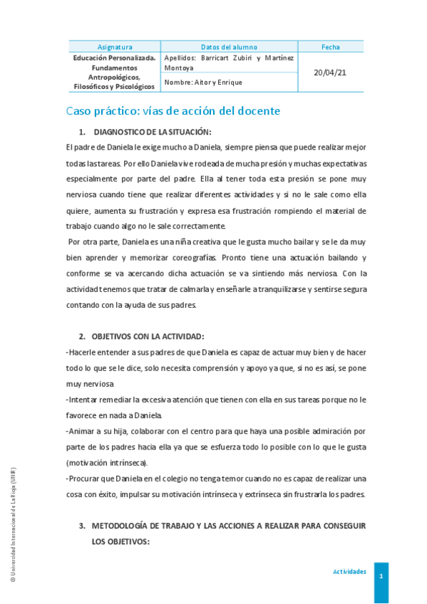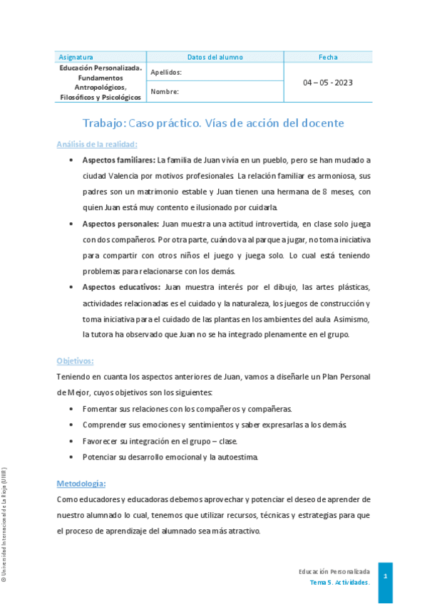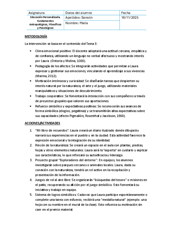 He publicado nuevos trabajos de 1º Educación Personalizada. Fundamentos Antropológicos, Filosóficos y Psicológicos: Caso práctico: Vías de acción docente.pdf