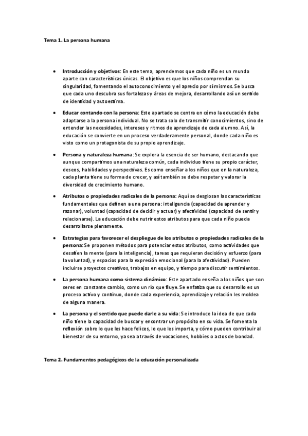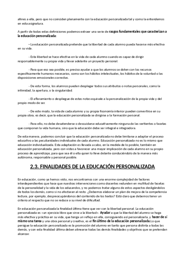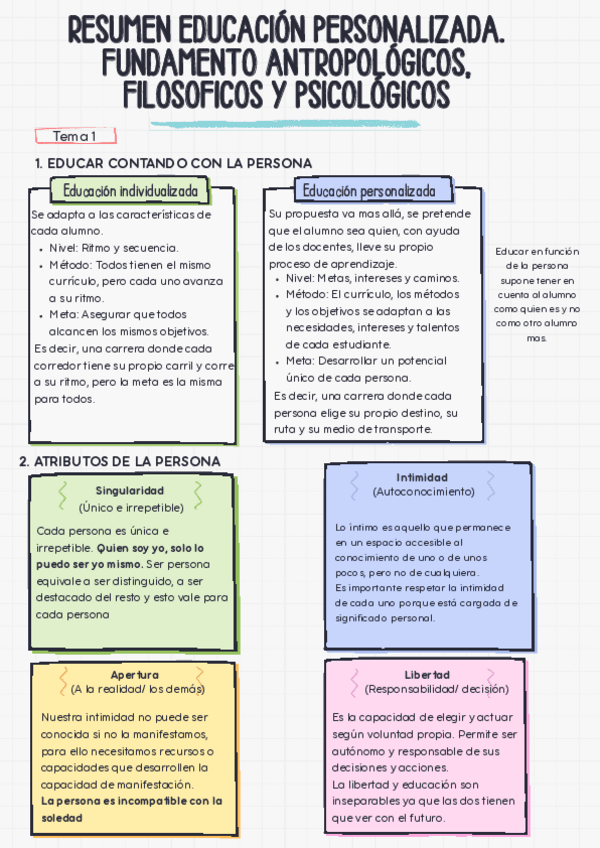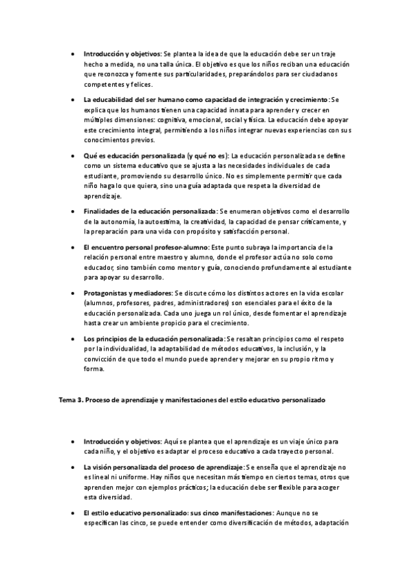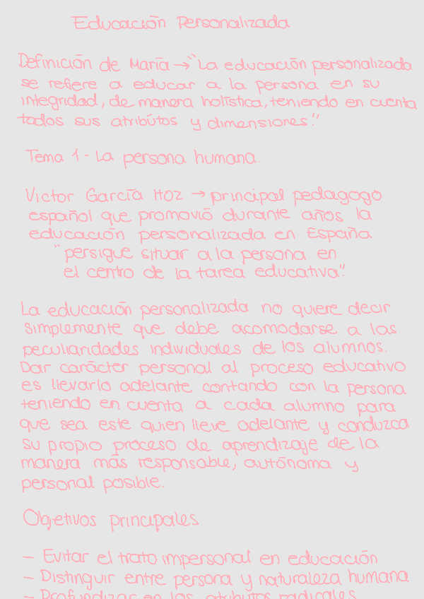 Resumen y apuntes del temario de Educación Personalizada.