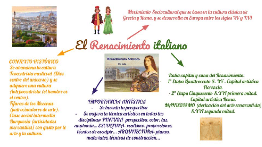 "Apuntes completos sobre las características generales del Renacimiento italiano, explorando las bases de este fundamental periodo artístico. El documento aborda el contexto histórico y cultural (humanismo, mecenazgo), los principios estéticos (antropocen