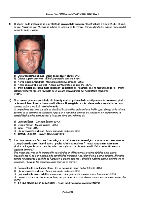 He publicado nuevos apuntes de 5º El Cervell i les seves Funcions: Exámenes Neurología
