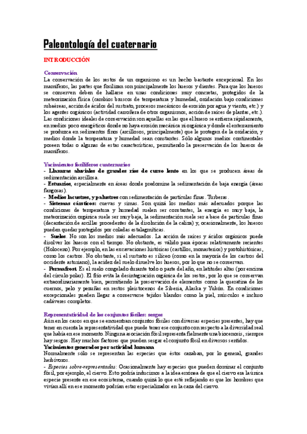 El Cuaternario: Ambientes Sedimenarios y Paleontología