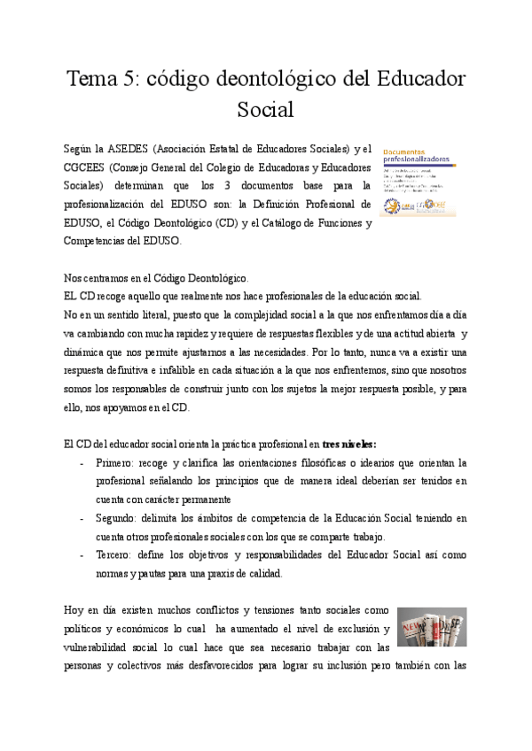 He publicado nuevos apuntes de 3º el Educador Social. Profesionalización y Deontología: Tema-5-Deontologia.pdf