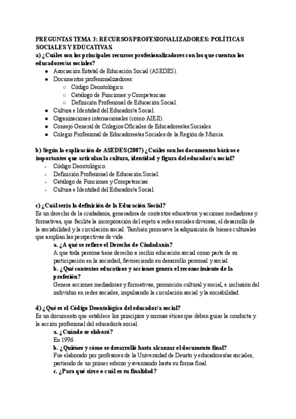 He publicado nuevos examenes de 3º el Educador Social. Profesionalización y Deontología: Preguntas por temas