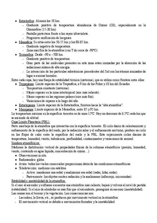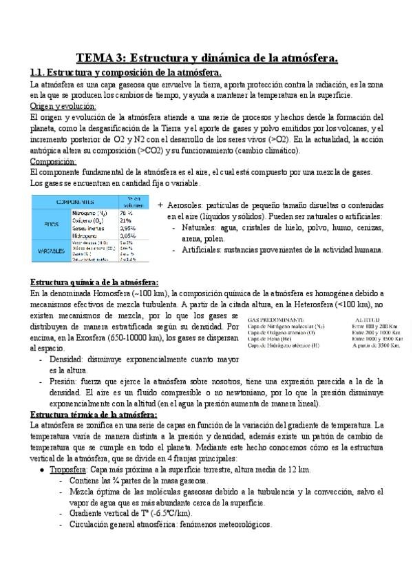 Apuntes Tema 3: Estructura y dinámica de la atmósfera. El medio físico, 1ºBiología UGR