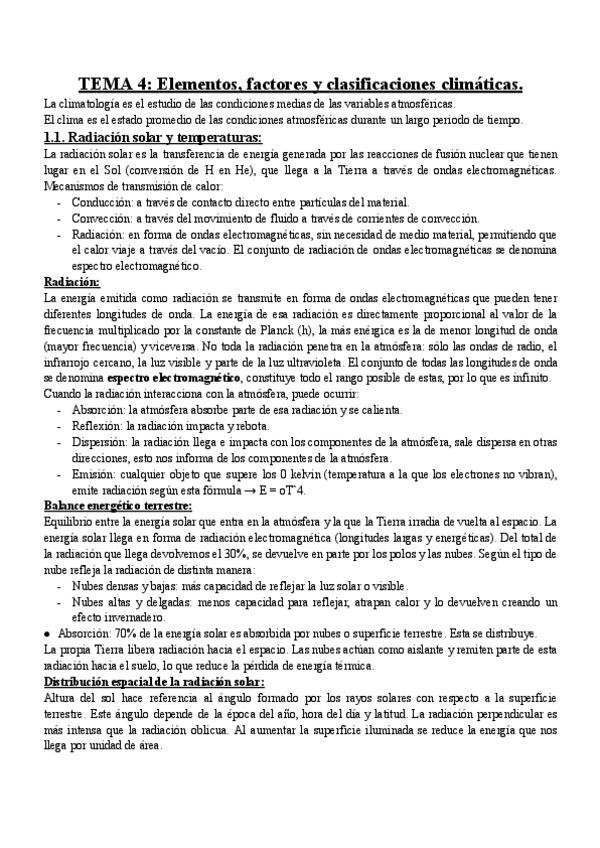 Apuntes Tema 4: Elementos, factores y clasificaciones climáticas. El medio físico, 1ºBiología UGR.