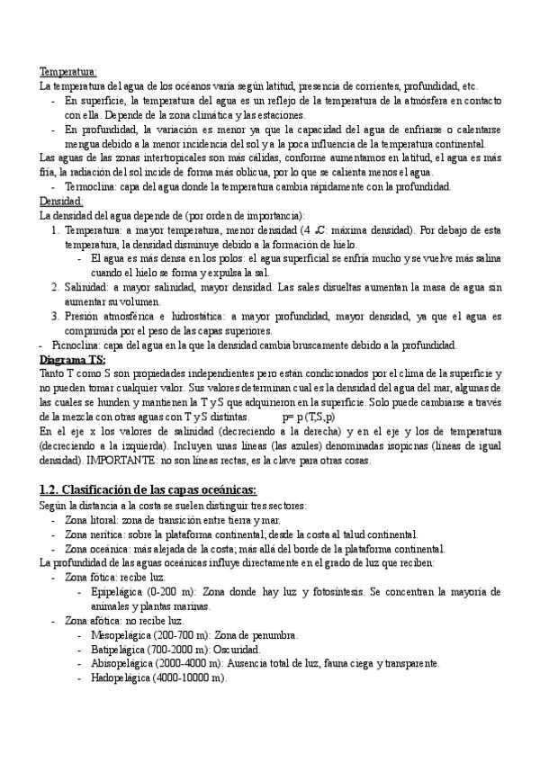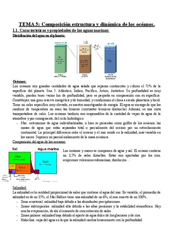 Apuntes Tema 5: Composición estructura y dinámica de los océanos. El medio físico, 1ºBiología UGR