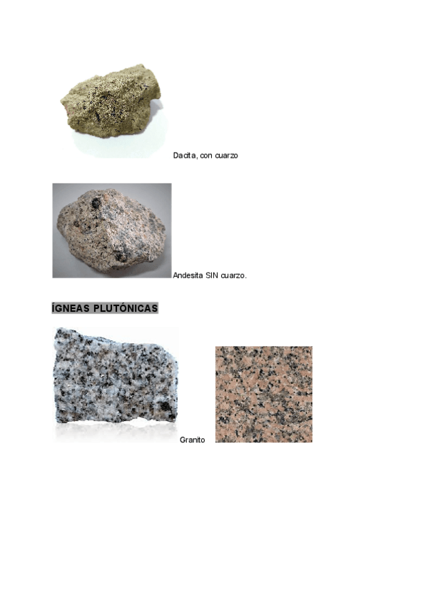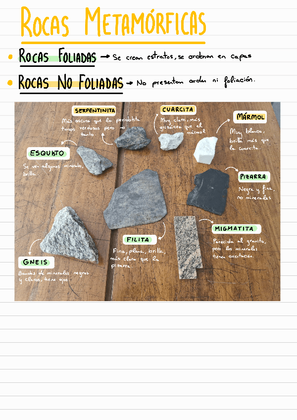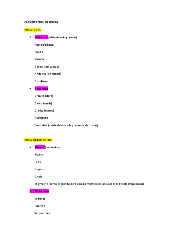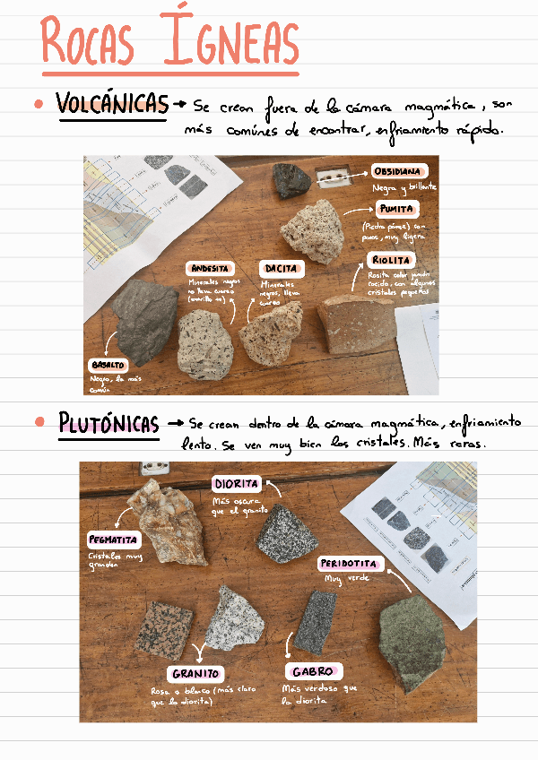 Recopilación de las rocas vistas en clase con sus nombres y tipos