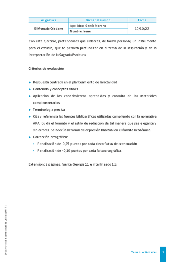 Exámen de mensaje cristiano