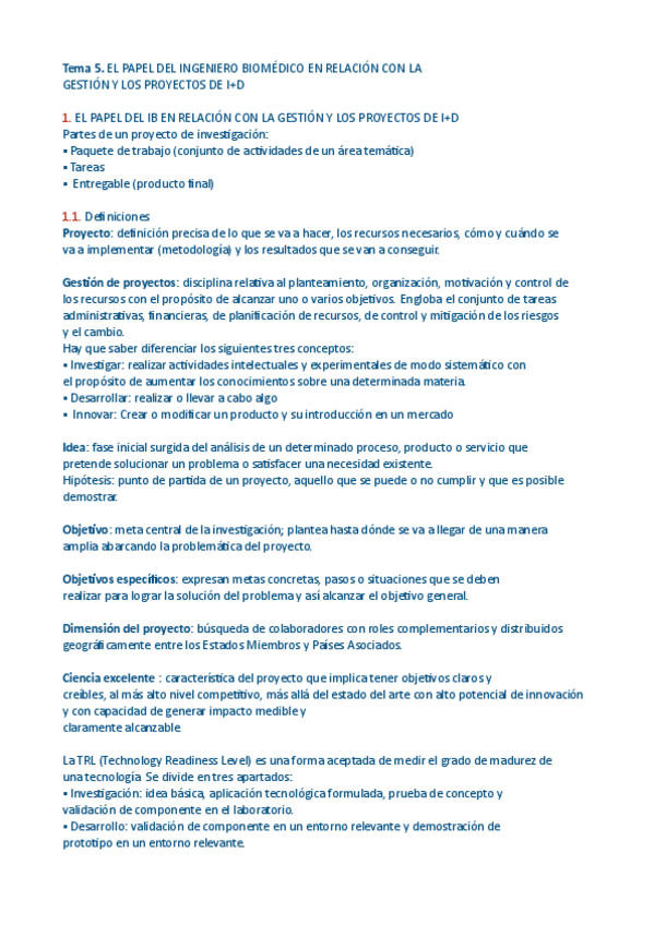He publicado nuevos apuntes de 1º El papel del Ingeniero Biomédico: t.6-IB-en-proyectos-ID parcial 2.pdf