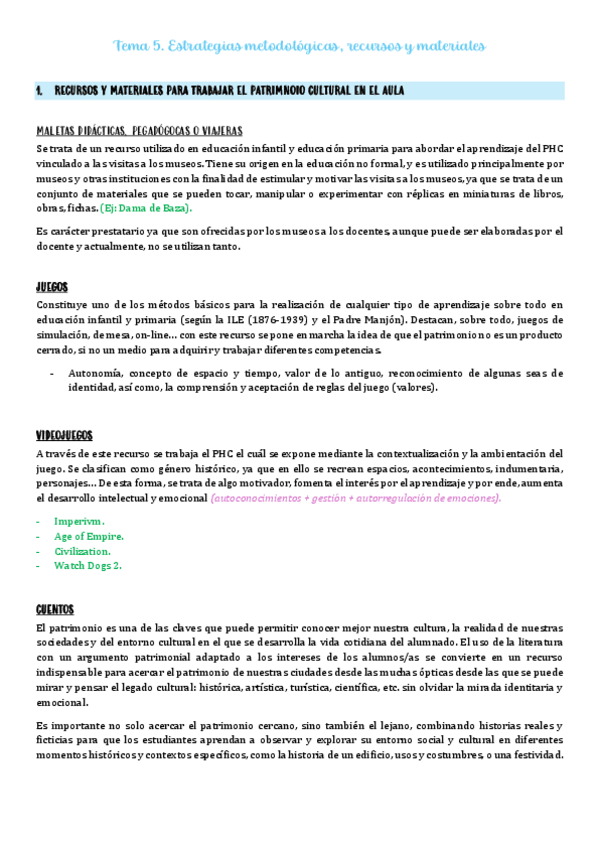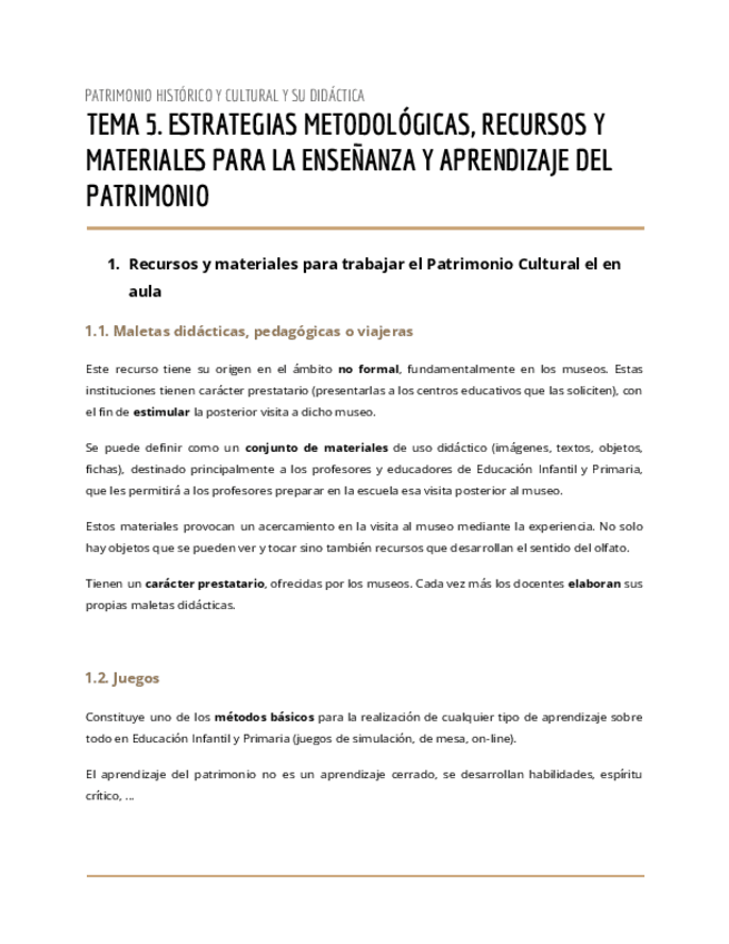 He publicado nuevos apuntes de 1º El Patrimonio Histórico y Cultural y Su Didáctica: Tema-5.-Estrategias-recursos-y-materiales.pdf