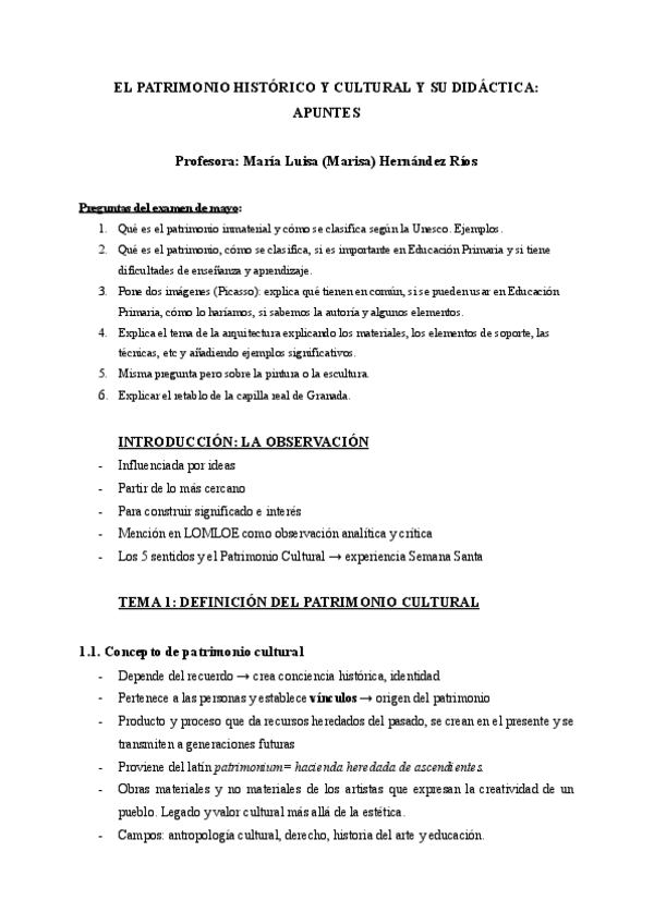 He publicado nuevos apuntes de 1º El Patrimonio Histórico y Cultural y Su Didáctica: Apuntes-examen.pdf