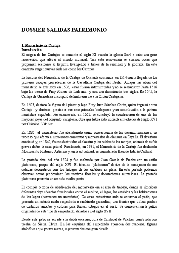 Resumen completo de todo el temario de Patrimonio, junto a salida al monasterio de la Cartuja. DE ANTONIO TUDELA SANCHO