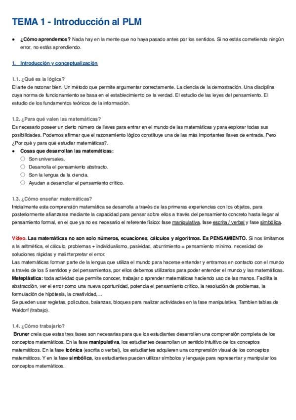He publicado nuevos apuntes de 2º El Pensamiento Lógico-Matemático en Educación Primaria: tema-1-REDACTADO.pdf