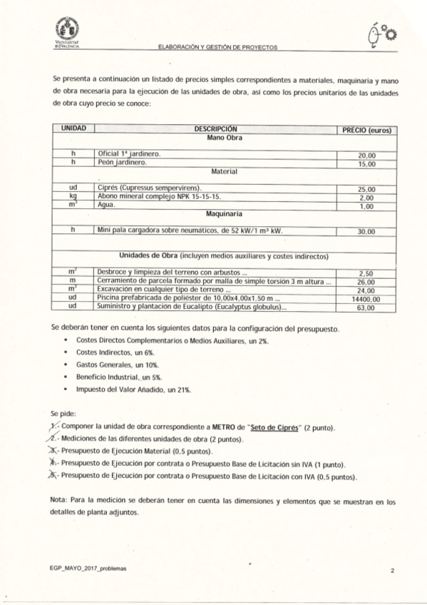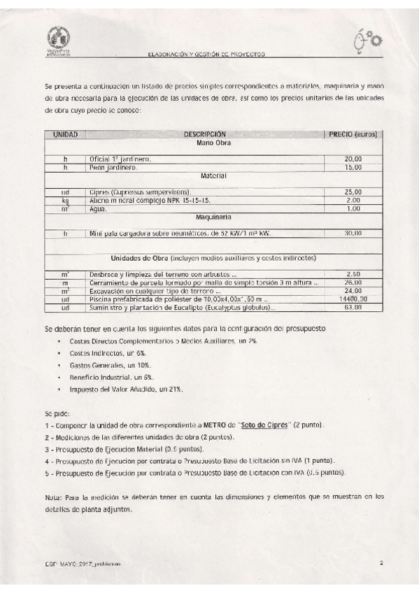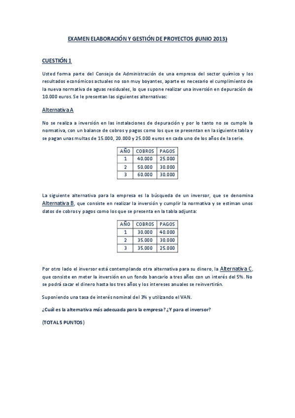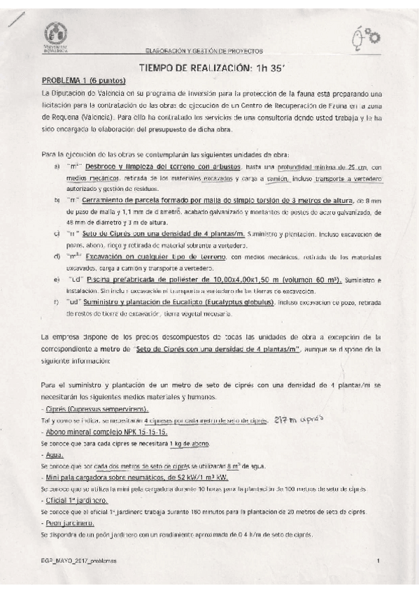 He publicado nuevos examenes de 3º Elaboración y Gestión de Proyectos: examen problemas proyectos junio 2017.pdf