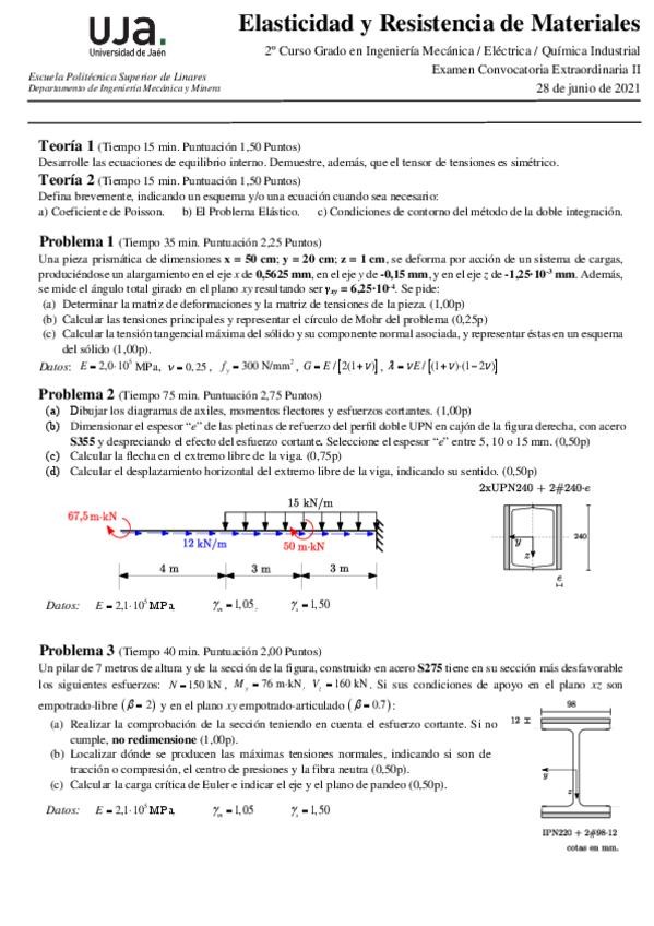 He publicado nuevos examenes de 2º Elasticidad y Resistencia de Materiales: RESUMENES-TEORIA-TEST.pdf