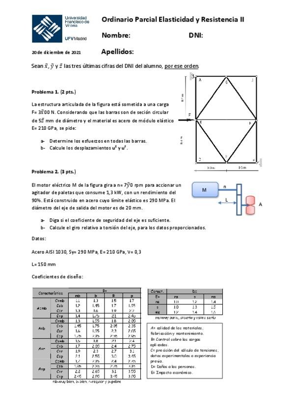 He publicado nuevos examenes de 3º Elasticidad y Resistencia de Materiales: 211220-Ordinario-Segundo-Parcial-Elasticidad-y-Resistencia-II-con-solucion.pdf