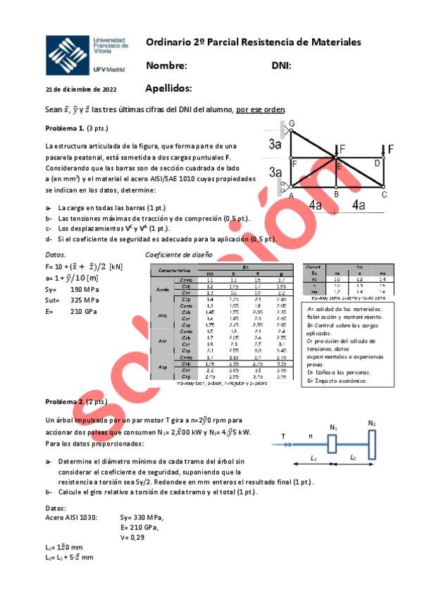 He publicado nuevos examenes de 3º Elasticidad y Resistencia de Materiales: 221221-Ordinario-Primer-Parcial-Resistencia-II-Solucion.pdf