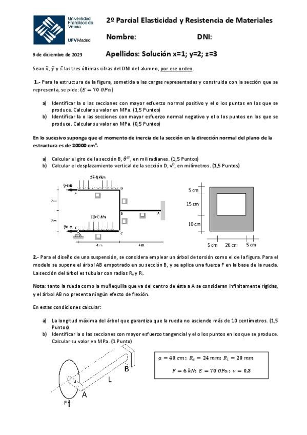 He publicado nuevos examenes de 3º Elasticidad y Resistencia de Materiales: 231209-Segundo-Parcial-Elasticidad-y-Resistencia-con-soluciones.pdf