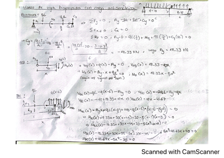 Ejercicios de diagramas de esfuerzos resueltos por pasos