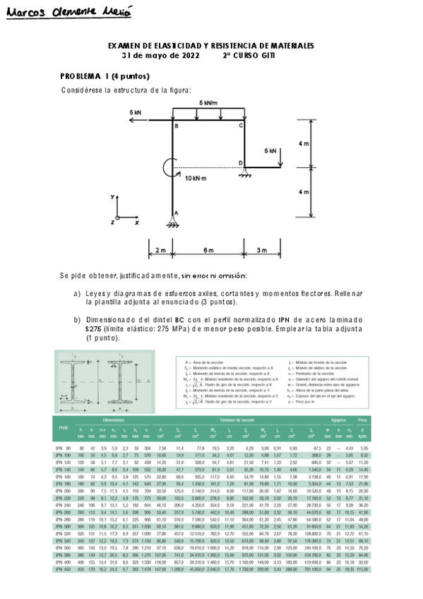 He publicado nuevos ejercicios de 2º Elasticidad y Resistencia de Materiales: REM: Ejercicios diagramas esfuerzos 1 parcial