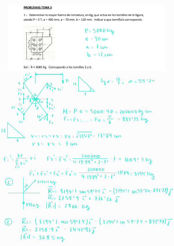 En el ejercicio 1, el tornillo 1 la componente "j" sería "3193'7sen(30'25)-833'3". No obstante, el resultado final es correcto.