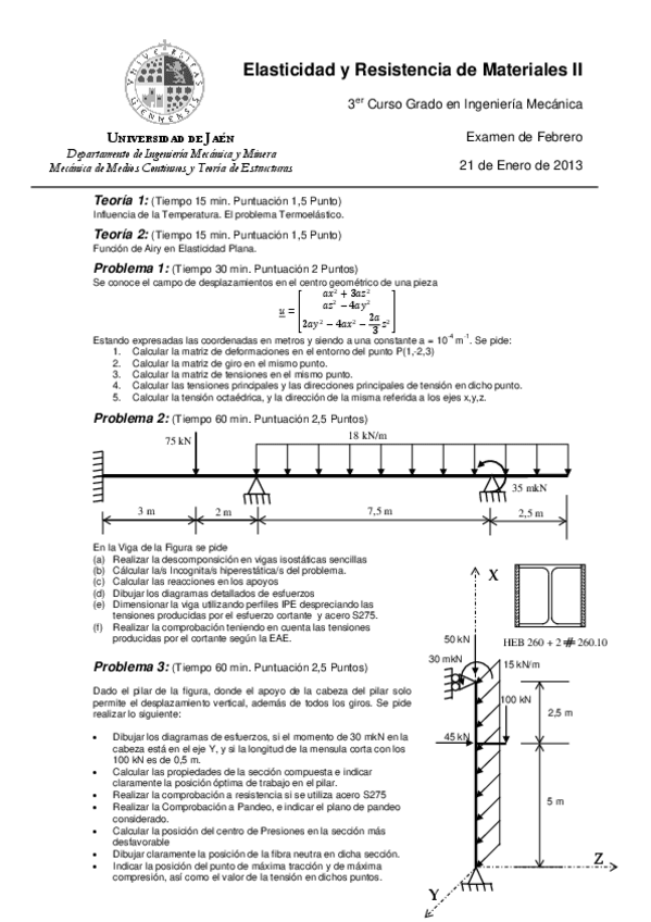 He publicado nuevos examenes de 3º Elasticidad y Resistencia de Materiales II: Problema-2-examen(enero 2021).pdf