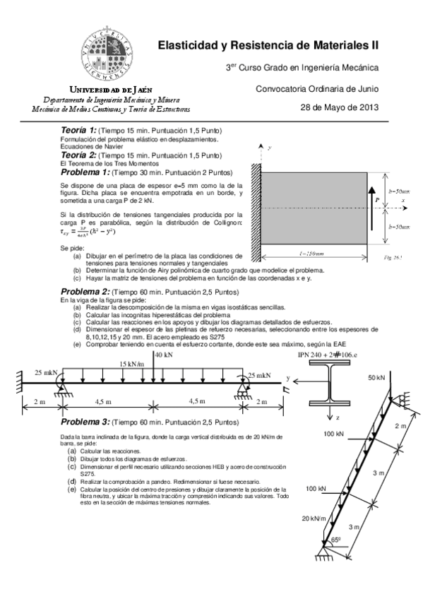 He publicado nuevos examenes de 3º Elasticidad y Resistencia de Materiales II: Enunciados examenes numerados.pdf